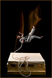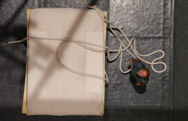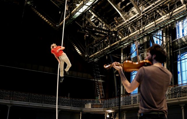 Recomendado para mayores de 12 años, ‘Le Vide’ (El vacío) nace en Châlons-en-Champagne, en el 2009, en el entrenamiento de Fragan Gehlker en el Centro Nacional de las Artes del Circo, en una disciplina con una simplicidad radical: cinco cuerdas suspendidas, y en cada una un intento de ascenso. El proyecto crece cuando se suma Alexis, técnico, sonidista y violinista, que cae en ‘El vacío’ en el año 2011.
